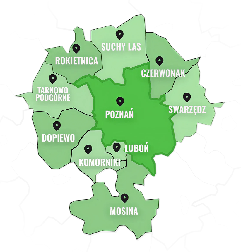 Jako doświadczeni specjaliści, obecni na rynku już od 2008 roku, doskonale rozumiemy, jak istotna w codziennym życiu jest prawidłowo funkcjonująca instalacja kanalizacyjna. Z tego też powodu, do każdego ze zleceń podchodzimy kompleksowo. Nieważne, czy chodzi o montaż instalacji wodno-kanalizacyjnych, czy też usunięcie nadmiaru wapiennego osadu. Ponieważ nasza siedziba mieści się w centrum regionu, docieramy do naszych klientów w możliwie najkrótszym czasie – bez względu na porę czy dzień tygodnia. Dzięki temu nasze pogotowie wod-kan z Poznania i okolic od dawna cieszy się ogromnym zaufaniem nie tylko mieszkańców poznańskich dzielnic, ale również ościennych gmin, między innymi Dopiewa, Swarzędza czy Kórnika. Jeśli i Twoja kanalizacja wymaga profesjonalnego serwisu, sprawdź naszą ofertę i przekonaj się, dlaczego warto postawić właśnie na nas!
